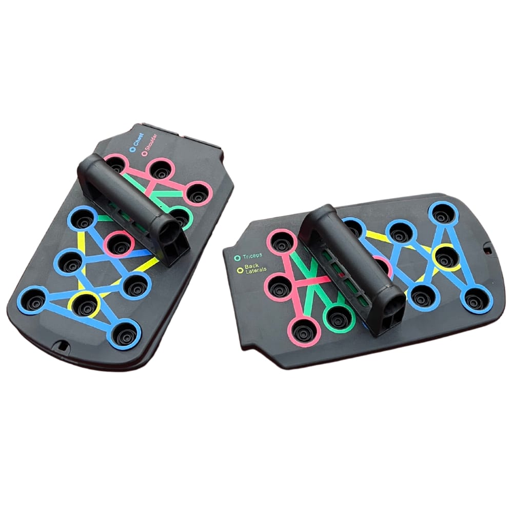 Trainiere 12 effektive Übungen für Schulter-, Rücken-, Brust- oder Trizepsmuskulatur durch abnehmbare Handgriffe. Transportiere es ganz leicht dank des trennbarem Push Up Boards um es überall hin mitzunehmen. Durch die 20 Anti-Rutsch Pads gewährt diese dir einen starken Halt auf jedem Untergrund.
